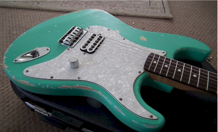 Official signature edition refinished in sea foam green, made in Mexico. This guitar has now been sold.