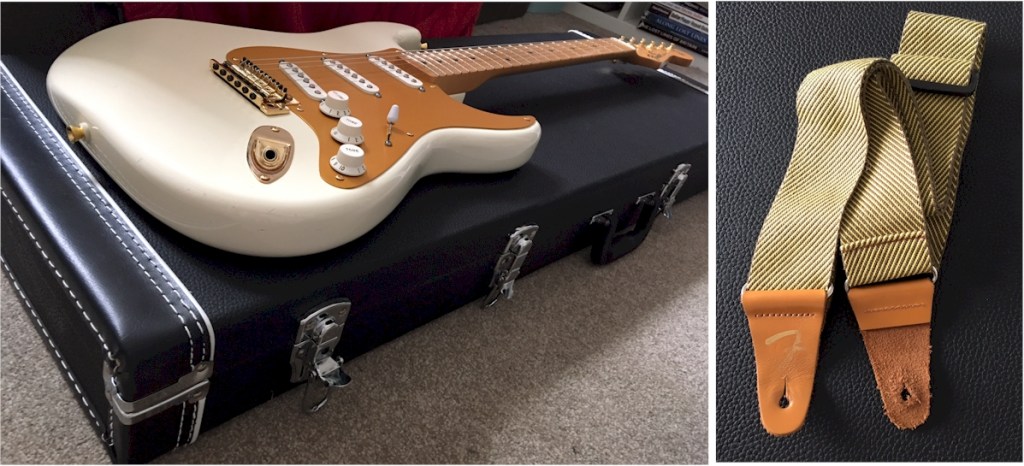 A real head-turner … this is a Fender Standard Mexico model that I’ve retro-fitted with gold-coloured hardware – right down to the pickguard screws. The tuners alone retail at over £100. There’s a hard case too.