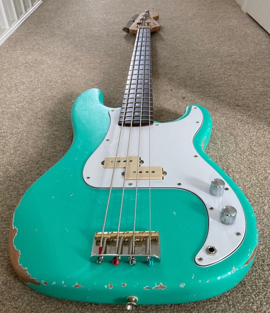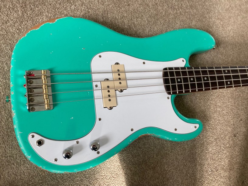 I picked up a couple of guitars travelling through Dorset – which a young couple found in the loft when renovating their home. One of them was this Squier Bass, which I’ve brought back to life.